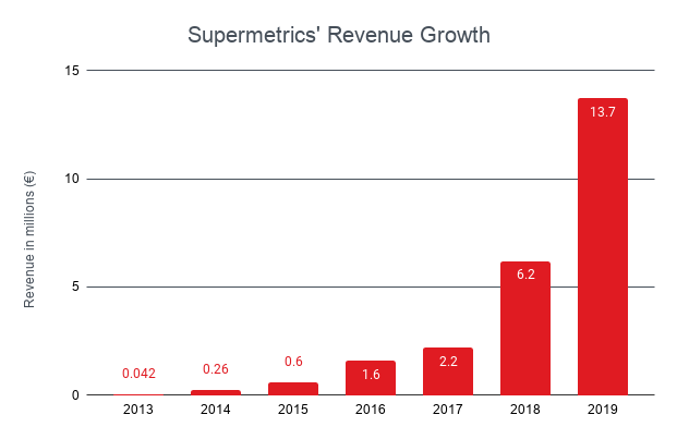 Now, exactly one year later in February 2020, Supermetrics just passed €20M in ARR (≈$22M).