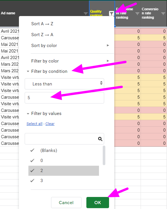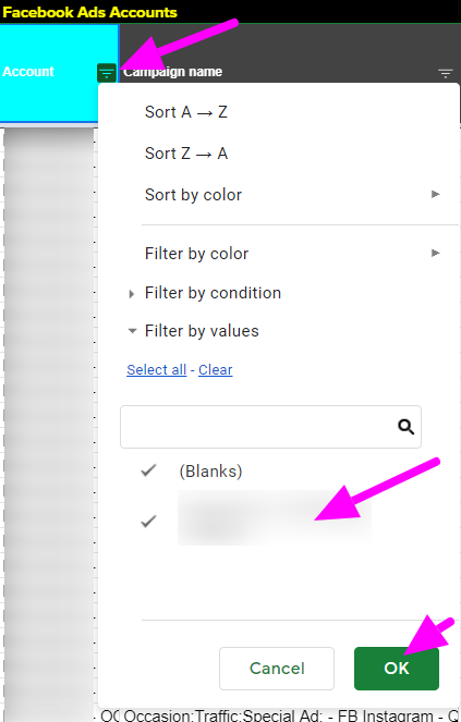 With the use of Google Sheet filters , you can narrow down to the problematic ads by clicking on the “by campaign” tab and by following these steps: