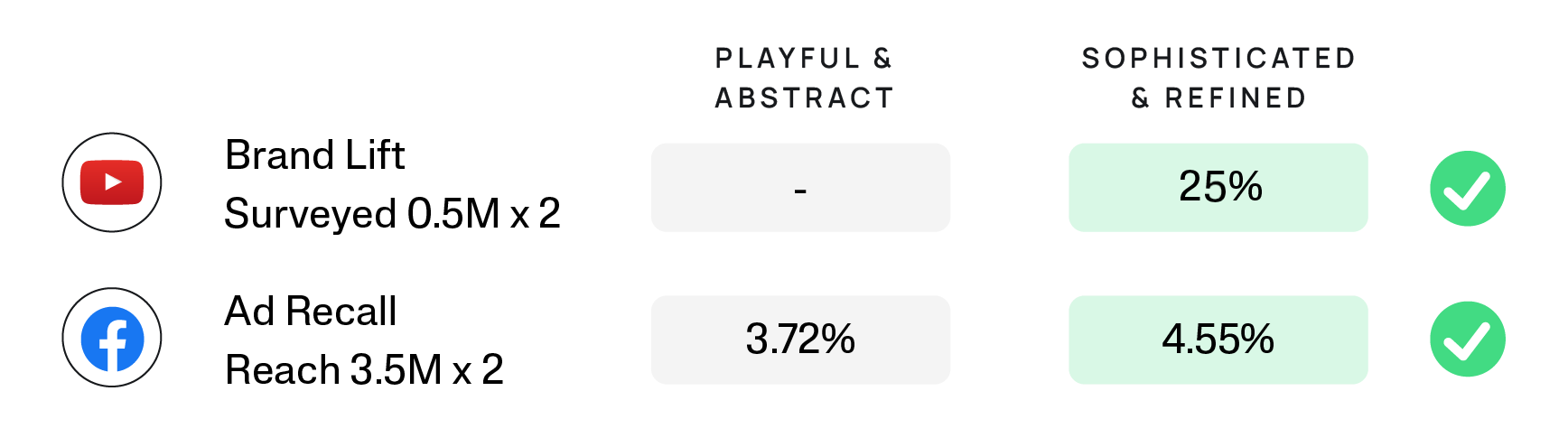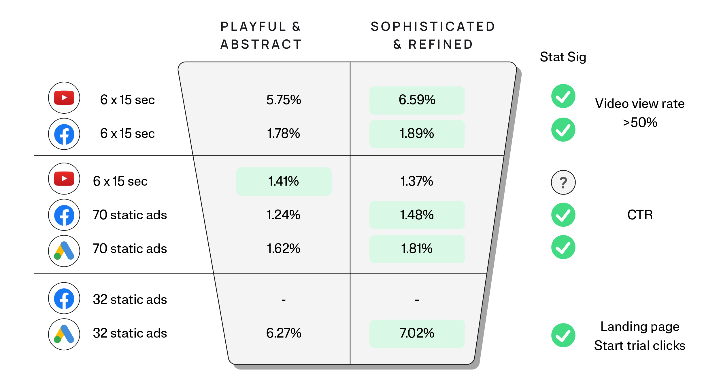 In short, it was a landslide. One variant clearly came out on top and showed it resonated strongly with our target audience, and it was the Sophisticated & Refined variant.