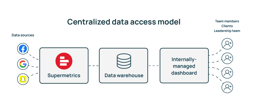 You can start centralizing your marketing data in a cloud-based warehouse without buying expensive hardware or getting access to a physical data center. Simply choose your data warehouse—e.g., Google BigQuery, Azure Synapse Analytics, or Snowflake—and start moving your data with a fully managed pipeline like Supermetrics.