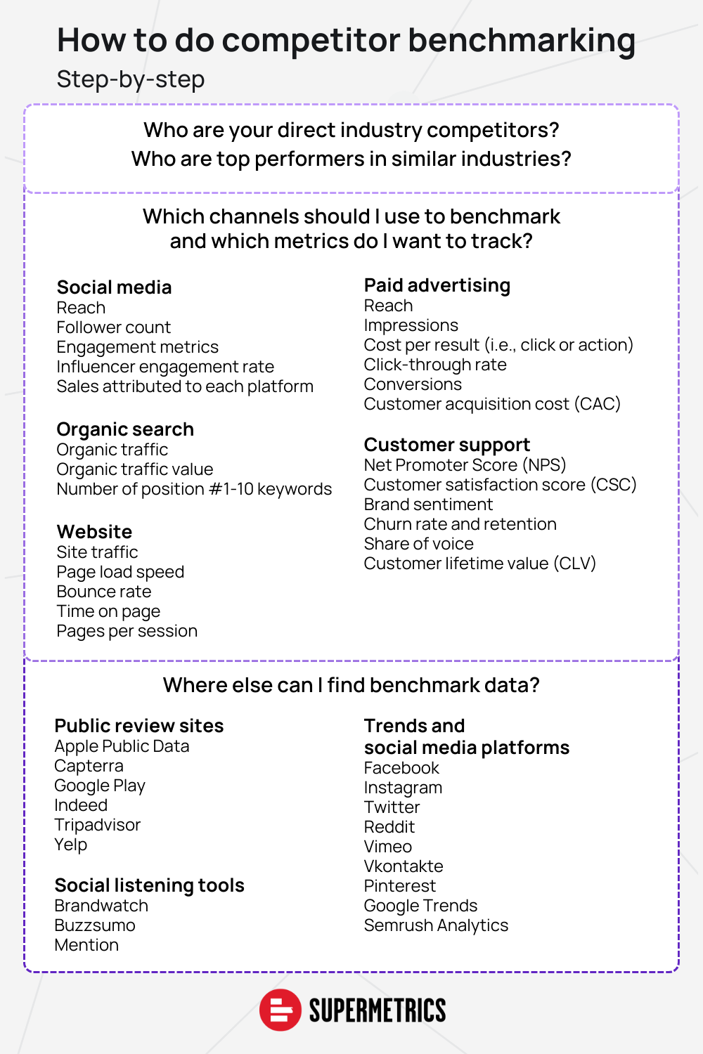 The first step in benchmarking metrics against your competitors is to pinpoint the brands you’re competing with.