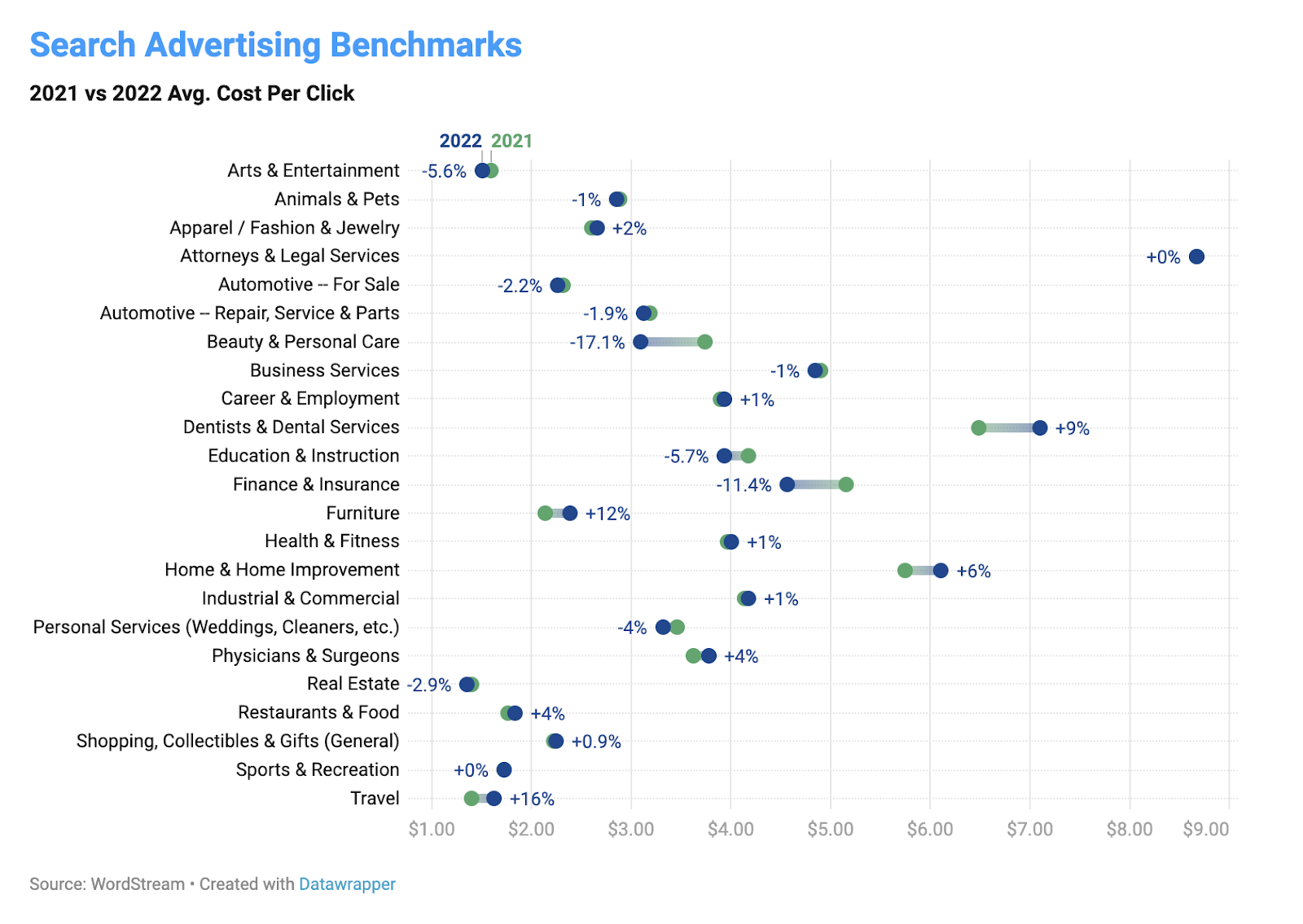 Wordstream compiled CPC data for Google Shopping ads across several industries, which you can use to benchmark your own Google Ads metrics .