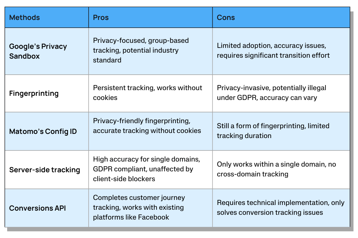 In this method, tracking is handled by the server rather than the browser. It provides high accuracy for first-party data collection, but it cannot track user behavior across multiple domains.