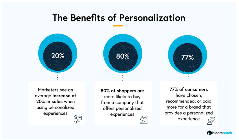 Enter personalization, which your CRM data can enable. The more you learn about your customers, the more personalized you can be in your approach. According to Bloomreach, marketers experience an average 20% increase in sales when using personalized strategies: