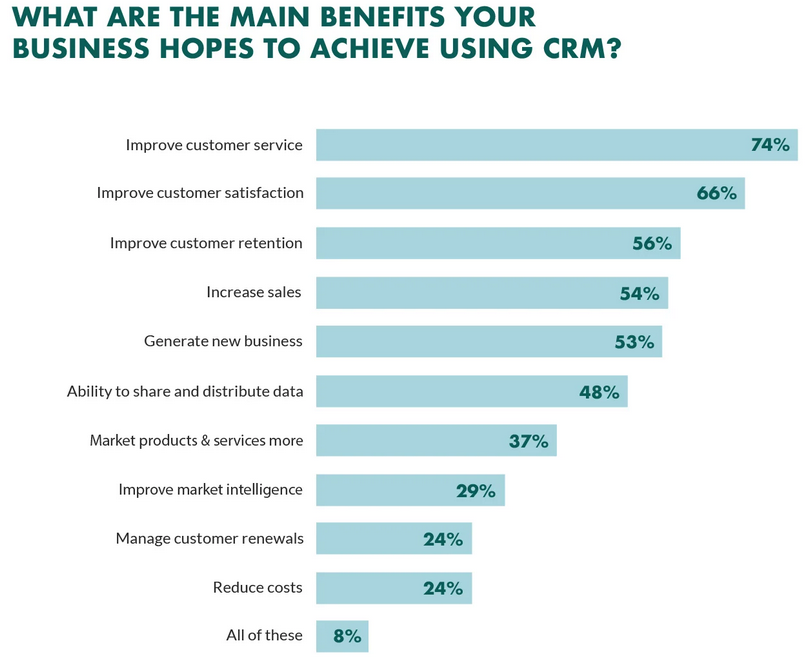 The main reasons for using CRM data include improving customer service, boosting retention, and increasing customer satisfaction: