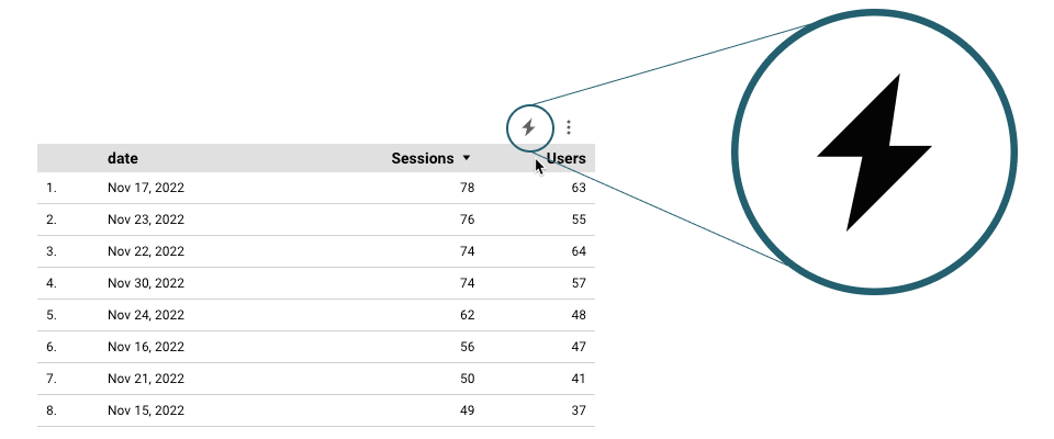 If you see this icon in the header of your chart in Looker Studio, your data is accelerated by the BI engine.