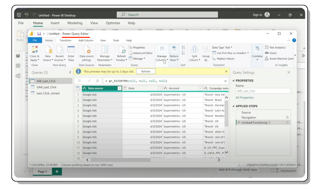 Typically, using the raw data the marketing platform provides isn’t enough for in-depth analysis. To build actionable reports, you need to do some prep work and make your data analysis ready. In this article, we’ll discuss different ways you can use Power BI to transform your data.