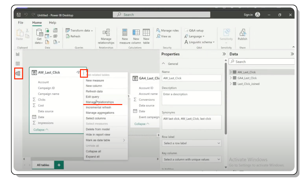 Although Power BI beats Looker Studio in its data blending capabilities, there are some limitations. It only allows you to create a relationship based on one join key. But often, you might want to join tables and create relationships on more than just one data point. For example, you might want to match the campaign name, account, and date between two datasets, like Google Ads and Google Analytics 4. Building the relationship inside your data warehouse might make sense in this case as it offers more flexibility.