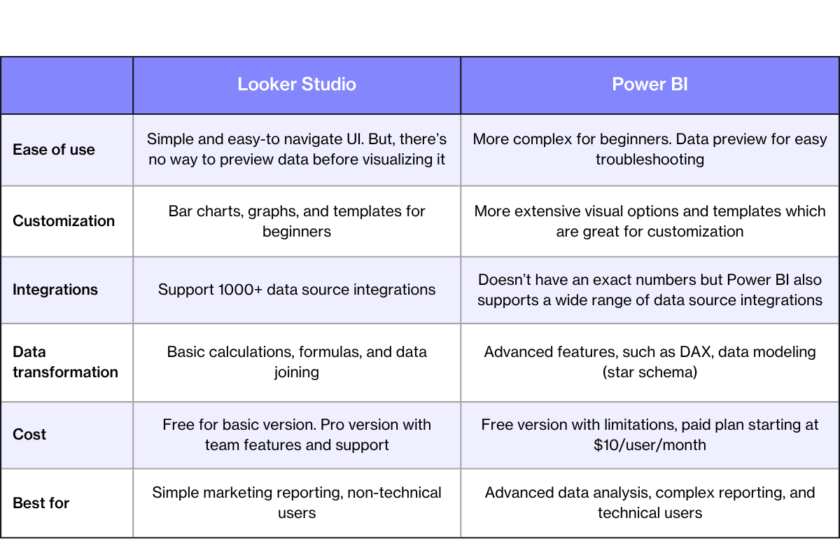 - Looker Studio vs. Power BI for data visualization