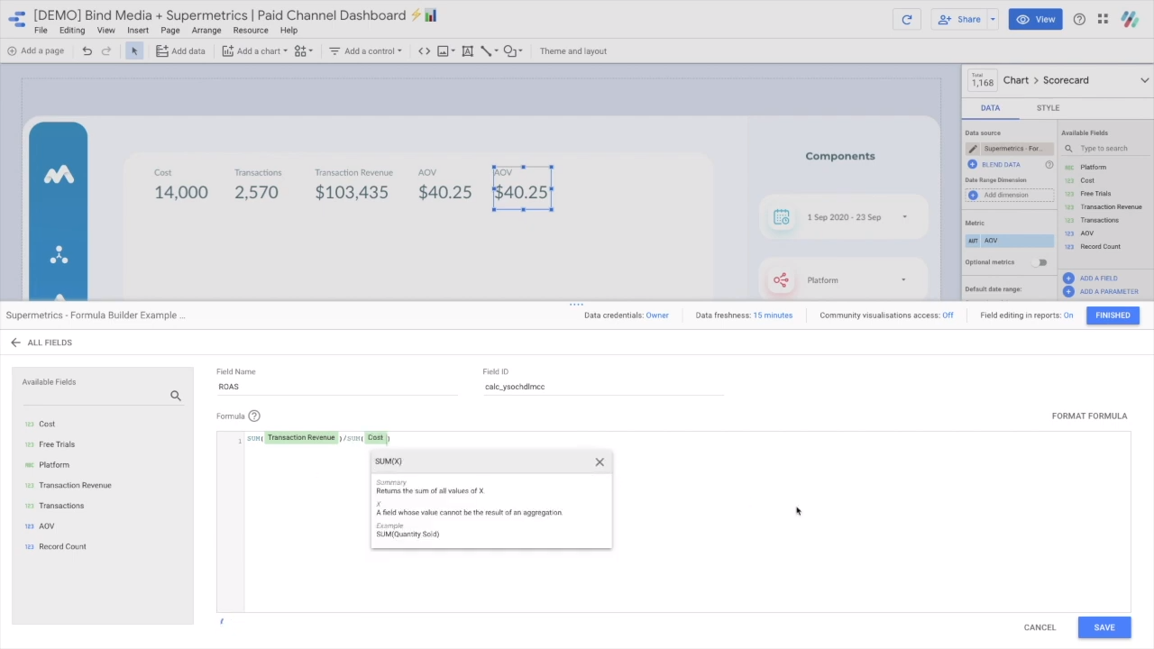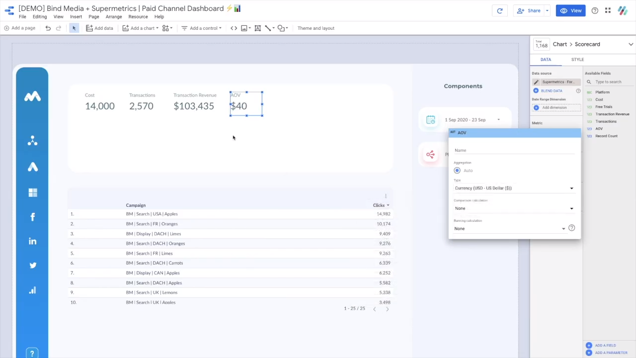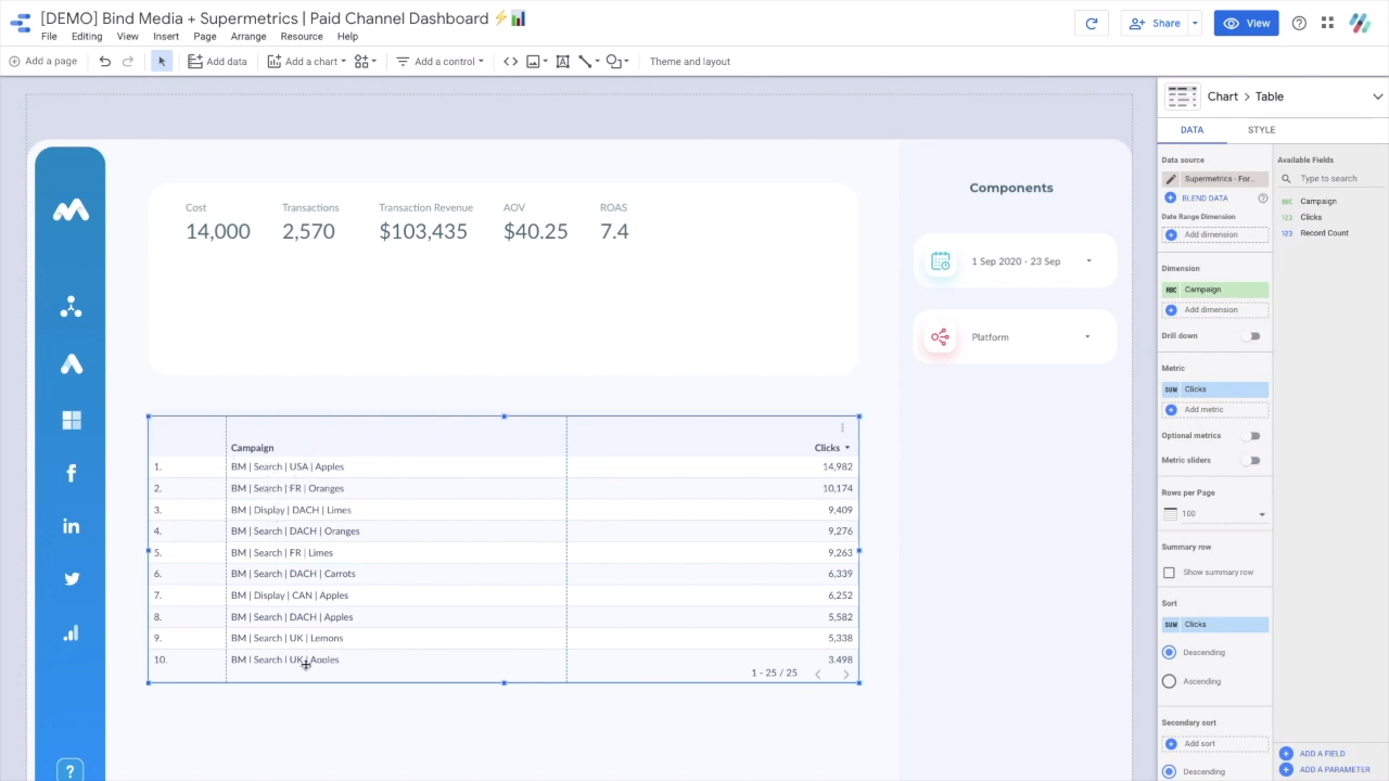 First, open the Bind Media + Supermetrics | Paid Channel Dashboard .