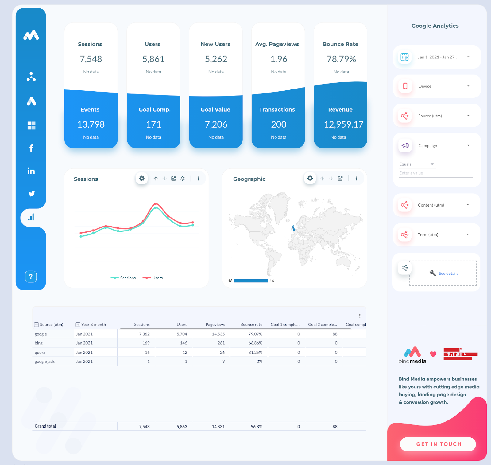 Our friends at Bind Media made a more extensive template with reports for all the connector channels included.