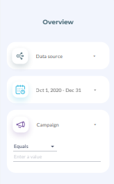 On this page, you’ll find three filters: data source, date selection, and campaign. You’ll have more filter options in each channel report.