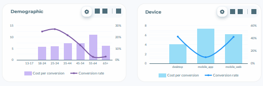 Below these, you’ll see the demographic and device breakdowns. All the breakdowns and filters are fully customizable so that you can adjust them on every page.