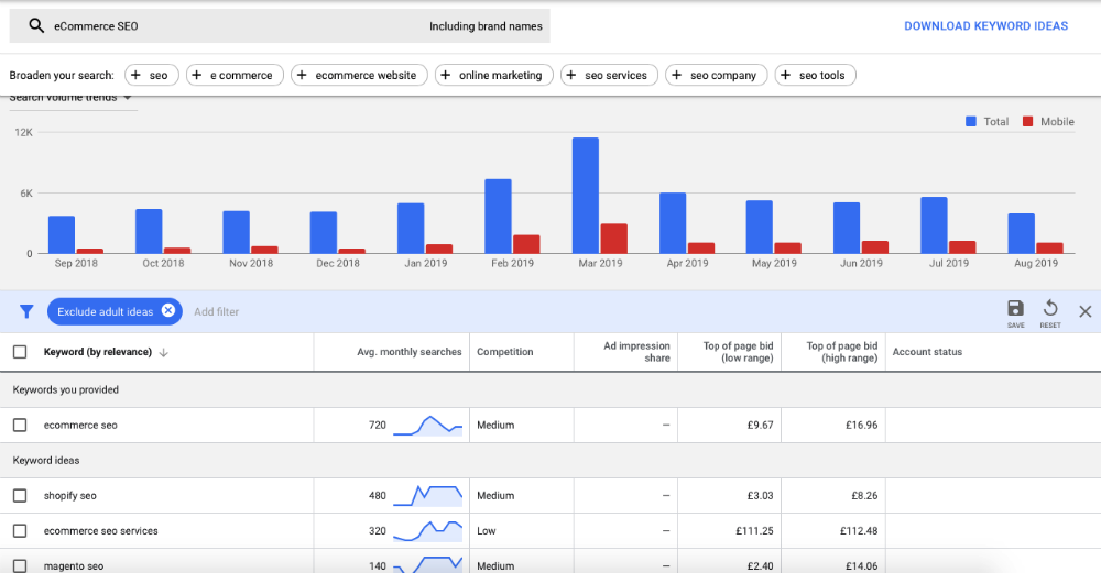 When it comes to paid and premium keyword search tools, applications like Moz , Ahrefs , Serpstat , Semrush , and others will help you do the job efficiently. These tools provide the same function as Keyword Planner while offering advanced functionality and competition analysis.