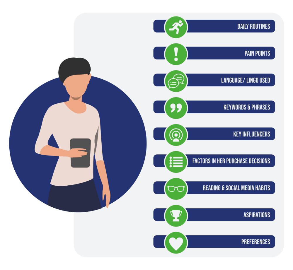 Start by creating a buyer persona that defines your customers, needs, online habits, and likes and dislikes. The persona combines the customer’s demographic details like age, gender, location, and personal details like their habits, likes, and dislikes. Creating a buyer persona means you keep your finger on your market’s pulse all the time.