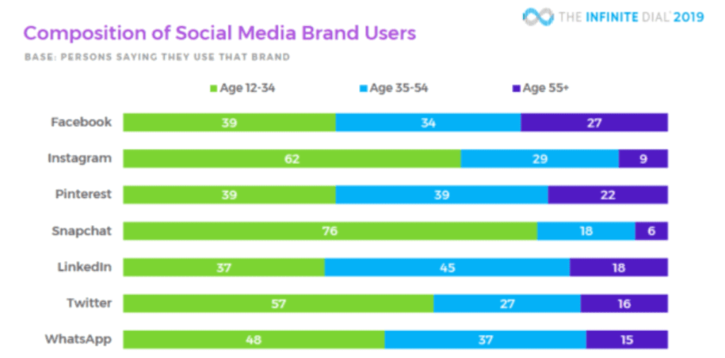 The infographic above gives you an idea of the age profiles of users on different social platforms. However, this is only part of the story. You will need to do more research to find a social platform that works for your brand.