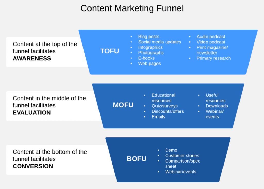 Your content will include blogs, social media posts , videos, and infographics at this stage of the funnel. The content focuses on creating brand and product/service awareness. The content should highlight the problem your product can resolve, problems highlighted in the persona.