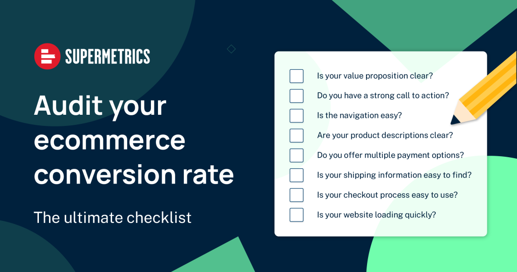 If you’re looking for an easy way to move your Shopify , Klaviyo , and Stripe data to your analytics platform to track the conversion rate easily, consider using Supermetrics. We’ll make it easy to gather all your scattered ecommerce analytics and marketing data for better visualization.