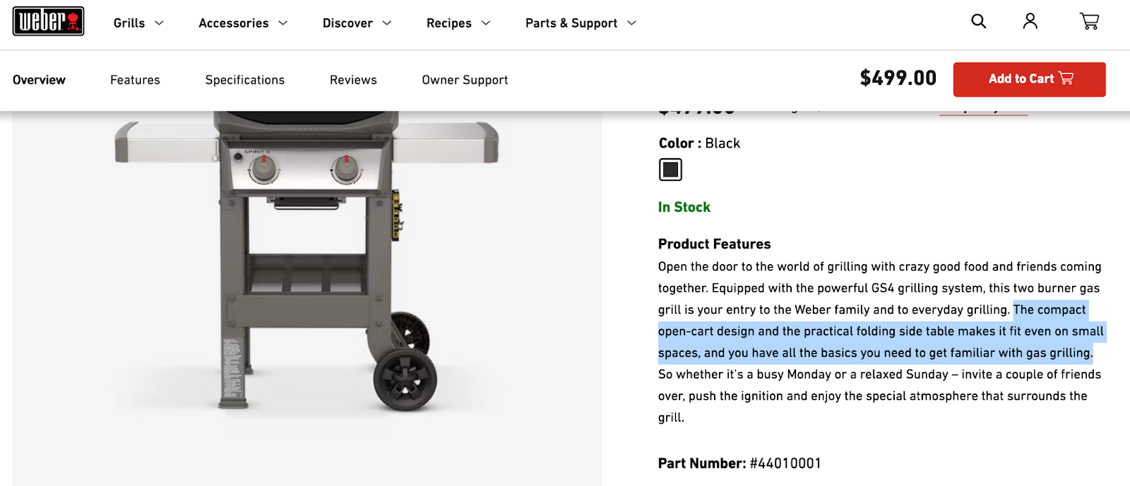 Here’s an example of copy that addresses user concerns and highlights the benefits of their outdoor grill at the same time.