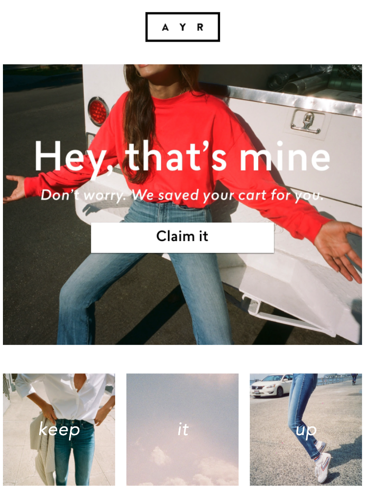 Online retail company, Ayr, uses humor to make their cart abandonment emails more entertaining.