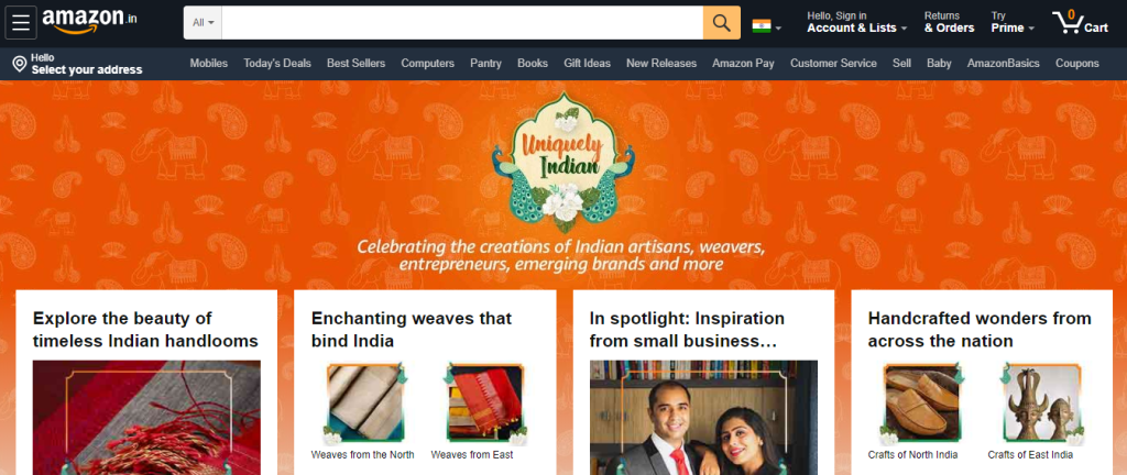 Amazon India’s homepage celebrates Indian artisans and weavers, highlighting the importance of handlooms and handicrafts in the country. This helps them strike a chord with local audiences. Tuning into your customers’ cultural preferences helps them warm up to your brand.