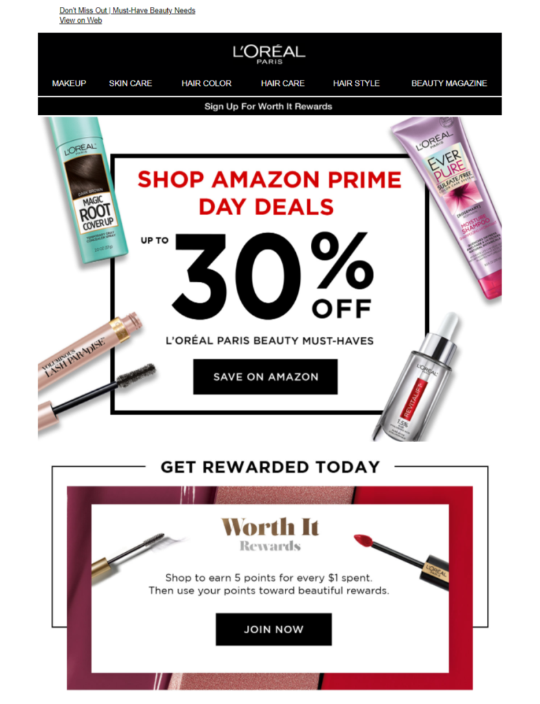 L’Oréal uses this channel to promote campaigns and discounts and encourage customers to make a purchase during the promo period.