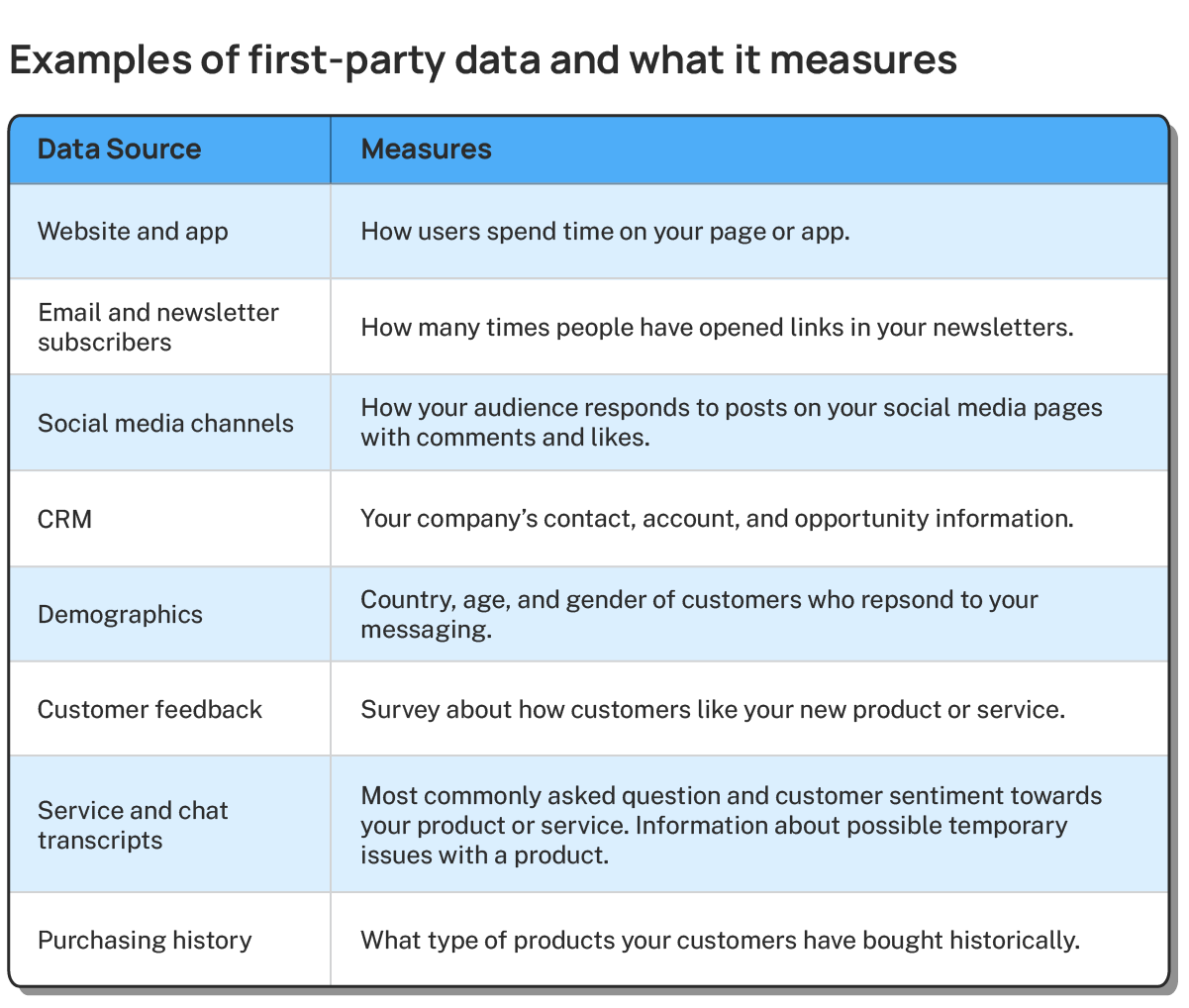 Besides being highly compliant, first-party data is a strategic differentiator since it’s unique to and owned by your company. You have endless opportunities to analyze it, feed it into different marketing measurement models, and use it to create highly targeted campaigns.