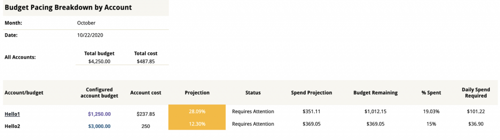 And whenever you’re not on the budget, the status column will alert you by showing “Requires attention”.