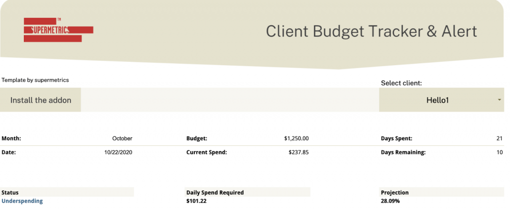 First, you’ll see month and date, total budget, and cost of all your accounts.
