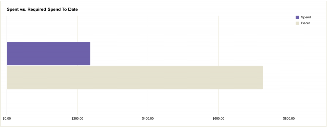 Next, you’ll see a bar chart presenting your current spend and required spend. It helps you keep track of and visualize your ad spend easily.