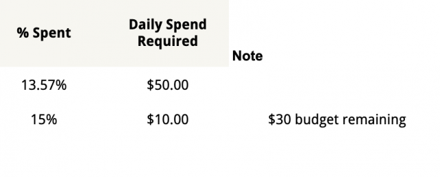 For example, if you’re on the 18th day of your campaign and there are 31 days in that month, your days spent ratio will be 0.5.