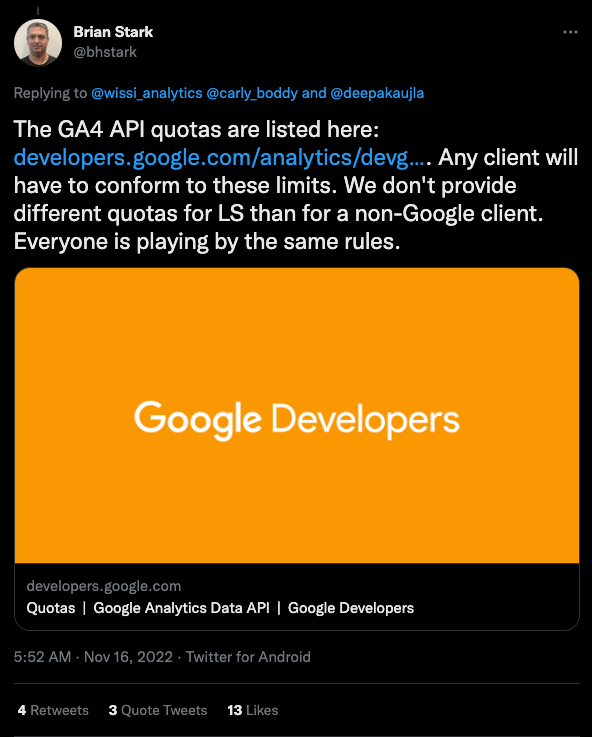 - What happened with the GA4 API quotas?