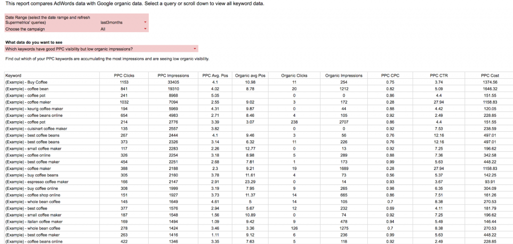 Compare your PPC performance vs organic performance and find out which of your PPC keywords are accumulating the most impressions and getting low organic visibility.