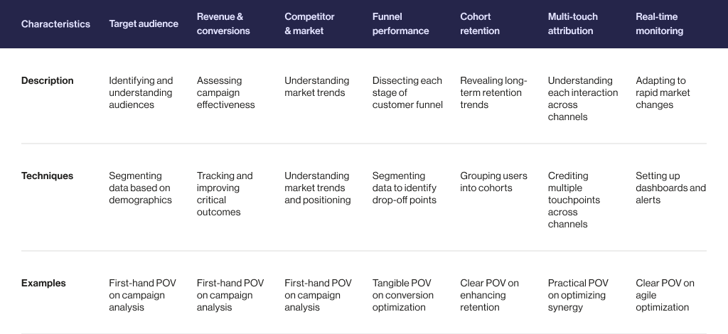 Growth marketing analytics help uncover the tactics that work, from identifying your highest-value audiences to optimizing conversion funnels and retaining loyal users.