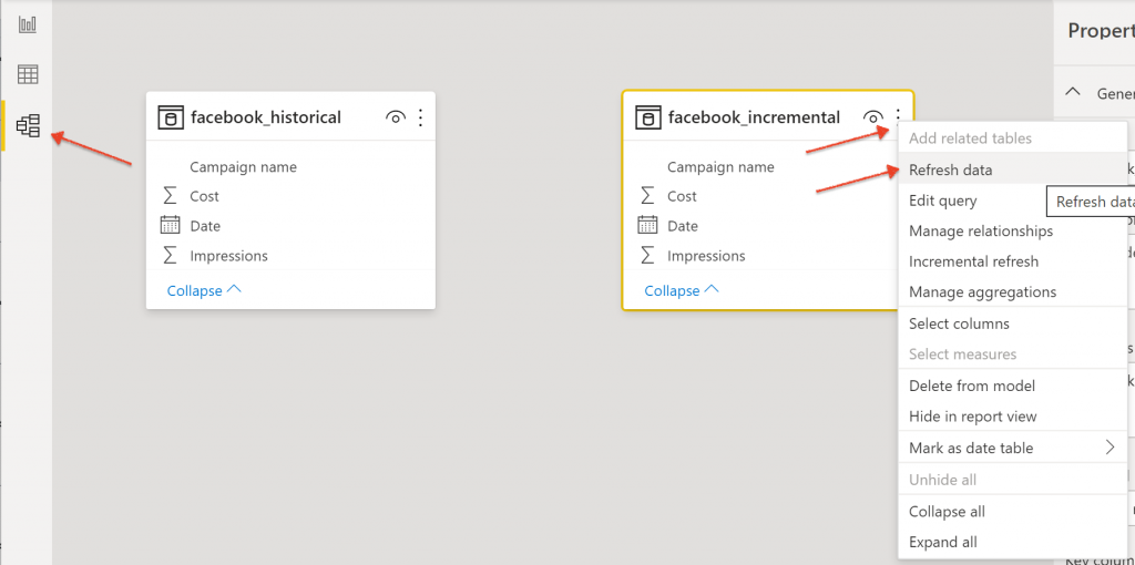 To overcome these limitations, we recommend storing a historical CSV export of your marketing data locally in Power BI and then creating a new calculated table that draws data from both the web-based table and your CSV-based table.