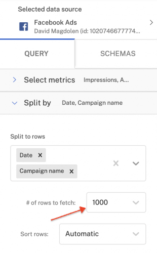 Pro tip: since the query manager is designed for data preview, it automatically limits the results shown to the first 1,000 rows. You can change this using the option under the “Rows to fetch” option under the “Split by” dropdown.