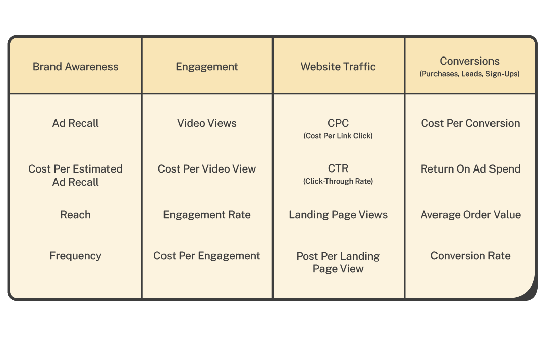 2. Key success metrics for Facebook Ad campaigns