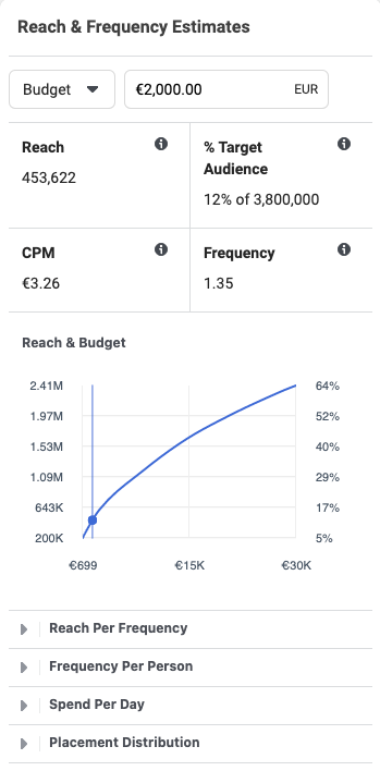Note that your budget is now on the right-hand side of your settings, just above your estimated reach and frequency.