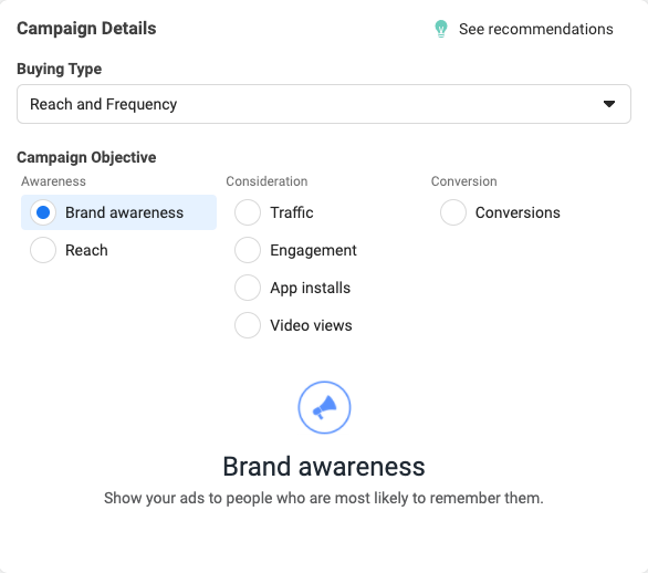 In our example, we’ll go with the awareness objective.