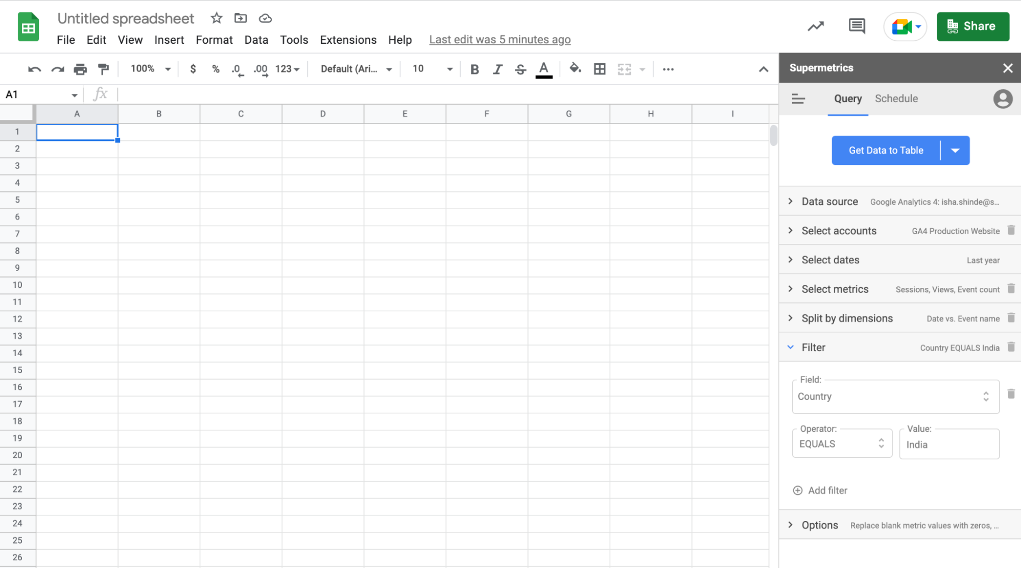 - Getting started with importing Google Analytics 4 data in Google Sheets