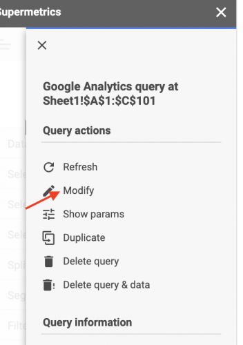 In case you want to modify your query, simply click on any cell containing data from the query in question, and the sidebar will reopen. Then click on “Modify” to make any changes you want.