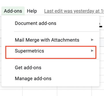After that, you can find Supermetrics under “Add-ons” in your Google Sheets.