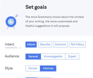 Grammarly is one of my favorite tools for this. It has a “Goals” feature that helps you adjust your writing to your intent and audience: