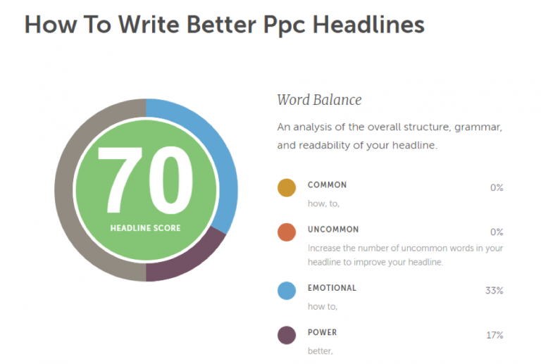 Writing strong headlines that encourage action is important. And using a headline tool can help you check-off key elements of strong headlines. CoSchecule’s headline analyzer rates headlines based on length, word choice, key terms, how it displays in search results, and several other factors.