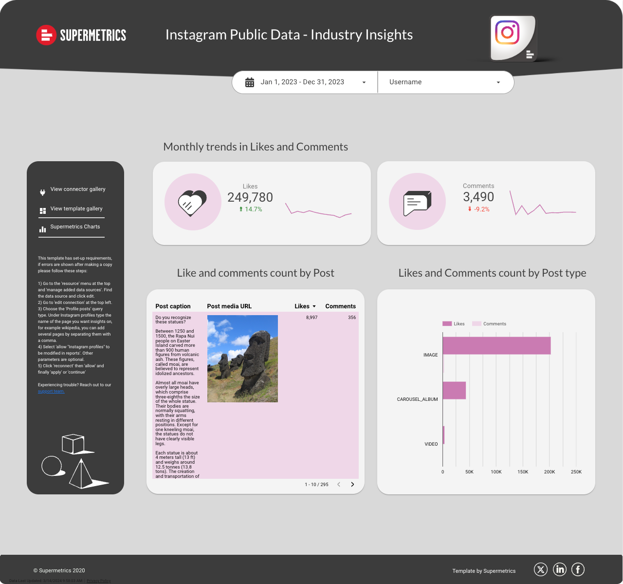 To get you started with competitor and industry analysis, we’ve created an Instagram Public Data- Industry insights template in Google Data Studio.