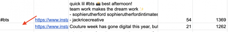 You might notice some missing hashtags from the “Hashtags” column like this: