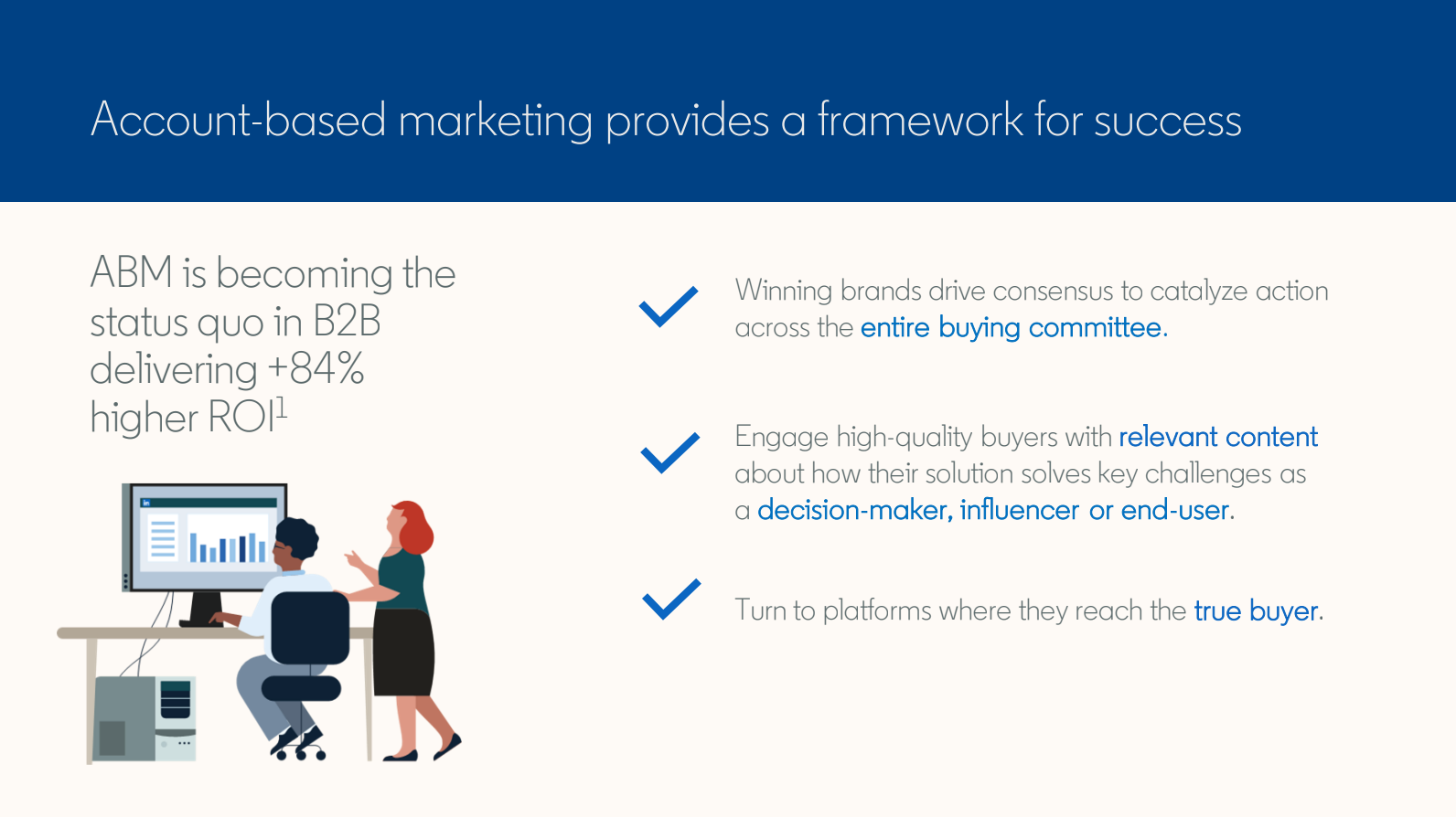 The goal of this method is to identify more meaningful companies, but also to nurture them further in their journey. It is important to not stop at just good fit companies and instead dig into the customer relationship management (CRM) system to identify individuals at every stage of the buyer’s journey. This way, marketers can serve up content to nurture potential customers along the journey and increase the chances of winning revenue.