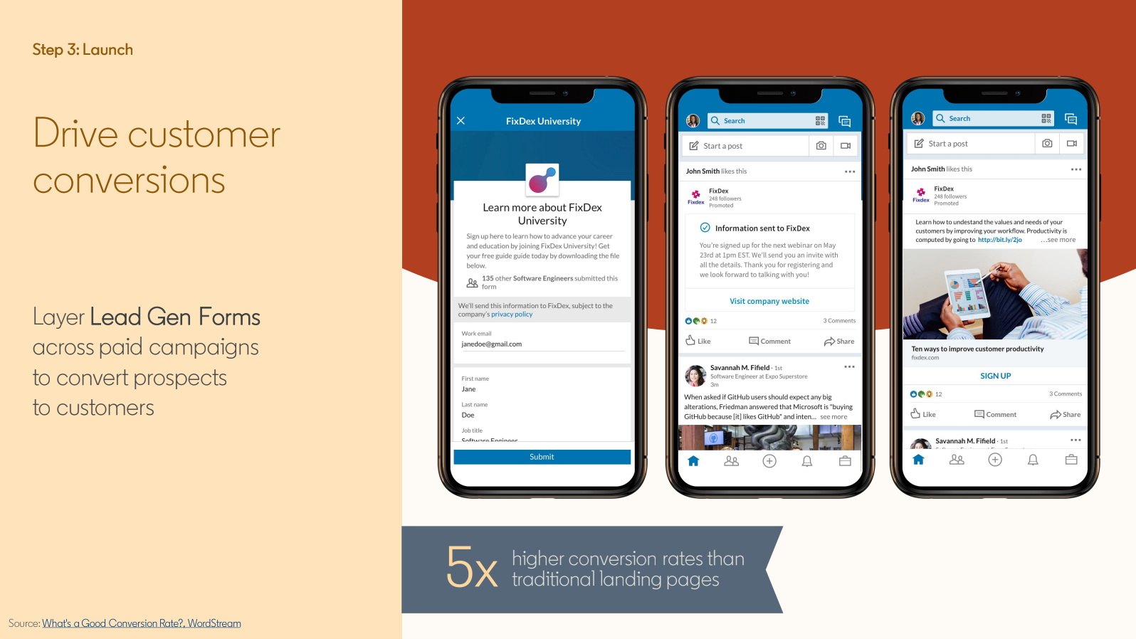 Lead gen forms are useful for moving people to action by streamlining the process of signing up for a service. When a member clicks on your white paper, they’ll encounter a pop-up that will repopulate the information they’ve already provided Linkedin into the form. All they have to do is click submit and they are now subscribed to your services.