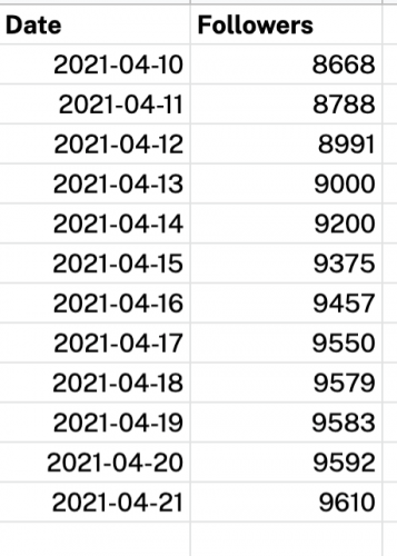 Now that you have your follower data in one place, you can easily track your daily or monthly follower growth.