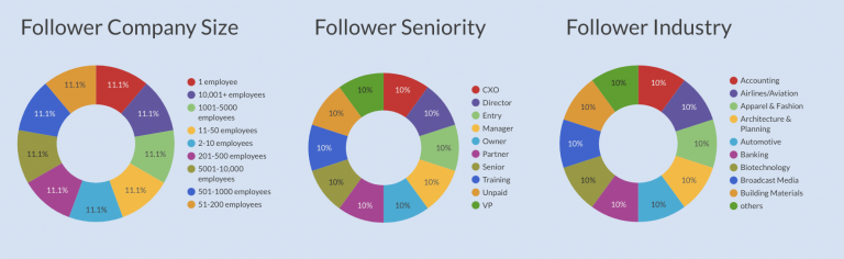 At first glance, you’ll see pie charts showing your followers by company size, seniority, and industry.